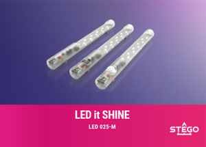 Stego’s space-saving Ecoline LED 025 Series is designed for enclosures, casings and technical installation spaces with high component density. With 400 lumen output at a color temperature of 6000 – 7000K, the series features an operating life of 60,000 hours for the switch cabinet lamp (LED), mounts by magnet, clip or screw. Switching options include PIR motion detector, on/off switch, or without switch.