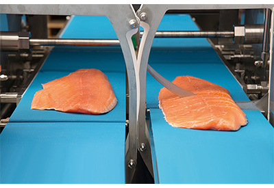 The Borncut BC225 portion cutter can process up to 4 tons of fish in just one hour to produce almost any number of individual pieces, cut to the desired weight and prepared for vacuum packaging. Speed and precision are key competitive parameters in the food industry, because even an apparently small increase in processing performance of, say, 0.5% can result in significant annual production cost savings. Gorm Sorensen, co-founder and CEO of Borncut, gives an example: “A processing challenge arises when foods such as fish and poultry are irregular in size and shape. It is difficult to cut them into equal pieces and minimize cutting waste. If, for example, 10 tons of salmon are processed per day, a machine output optimized by only 0.5% can save around DKK 5,000, which adds up to around DKK 1.25 million – or around 170,000 euros – per year.”