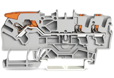 Wago’s 3-conductor through terminal block is equipped with lever and push-buttons, test ports, side and centre marking and is flexible for use on 35×15 and 35×7.5 DIN-rails.