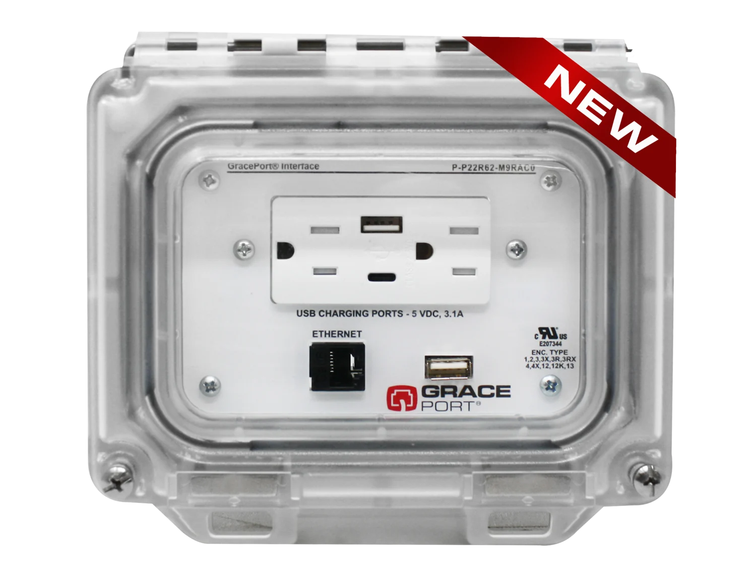 The GracePort MagView is fully customizable with a wide range of configurations, components, housings, and power options. Configure the MagView with USB-C components, GFCI, and international power options to charge laptops, tablets, and smartphones during updates, ensuring uninterrupted workflow. Customers can add custom text and logos at no additional cost and with no minimum order quantity.
