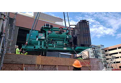 “While working within the constraints of an operational hospital you have to be creative,” said Encore Electric Project Engineer Jessica Linder. “In order to provide the hospital with their N+1 power redundancy, we flew the new generator in early. We navigated squeezing the generator through a tight window, having to turn the generator sideways to avoid an existing retaining wall. We took those challenges head-on and were able to provide the hospital with their new generator quickly and safely.”