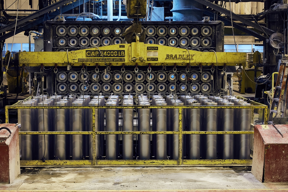The Mt. Holly, South Carolina smelting facility of global producer Century Aluminum houses casting equipment to process nearly 230,000 metric tons of material into standard-grade ingot, HDC ingot, extrusion billet and other products. As the first primary aluminum plant in the world to achieve the ISO 9001 Quality System Standard, Mt. Holly has the highest standards for production efficiency, energy utilization and environmental control.