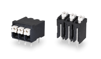 The four new series offer 2 to 24 pole counts, 3.5 mm or 5.00 mm pitches, and push button clamps for quick wire termination. Accommodating 24 to 16 AWG wires, these screwless terminal blocks carry 10 A UL current ratings, 300 Vdc UL voltage ratings, 17.5 A IEC current ratings, and 160 or 320 Vdc IEC voltage ratings. All models are also UL 1059 certified, IEC 60947-7-4 compliant, and hold the UL94V-0 flammability rating.