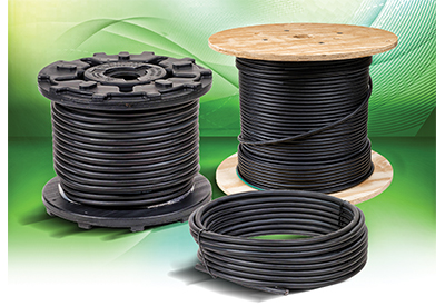 Individual conductor triads are stranded bare copper with black, white and red PVC insulation; the black PVC outer jacket is sunlight and moisture resistant.