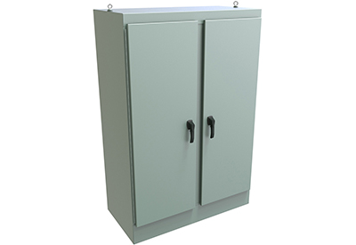 Designed to house electrical, electronic, hydraulic or pneumatic controls and instruments, the Type 4 two-door freestanding enclosure from Hammond Manufacturing provides protection where equipment may be hosed down or otherwise be very wet, or in specific applications.