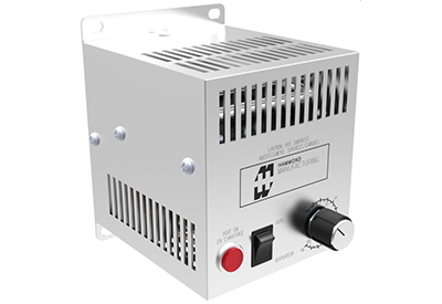 Introducing the 125-1300W fan heater with built-in thermostat (-18 C to +38 C) (0 F to +100 F), designed to prevent condensation or maintain minimum temperature in enclosures. This fan heater features a Fan Auto/On switch with pilot light for Heat On indication, high temperature safety protection, and an aluminum alloy outer casing, and has a connection via terminal block. The 1300W models are cURus approved only.