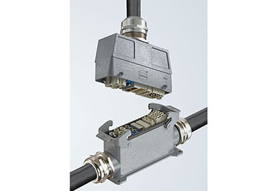 The space in the Han® L32 B housing can be filled with a Han E® insulator for 32 contacts (16 A / 500 V) or with a Han-Modular® articulated frame that can accommodate up to eight modules. As a result, the new size not only offers space for the articulated frame with the most module slots — it also results in the highest module density in a connector. Over 100 Han-Modular® modules means that users can put together the optimal interface for virtually any application.