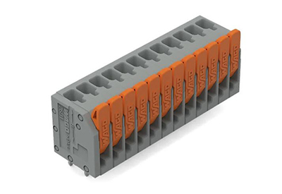 Introducing the PCB terminal blocks with Push-in CAGE CLAMP connection and levers, from WAGO. These terminal blocks allow for push-in termination of solid and ferruled conductors, allowing for intuitive and tool-free operation. Several clamping units can be held open simultaneously, simplifying the connection of multi-core cables, and testing can be performed both parallel and perpendicular to conductor entry.