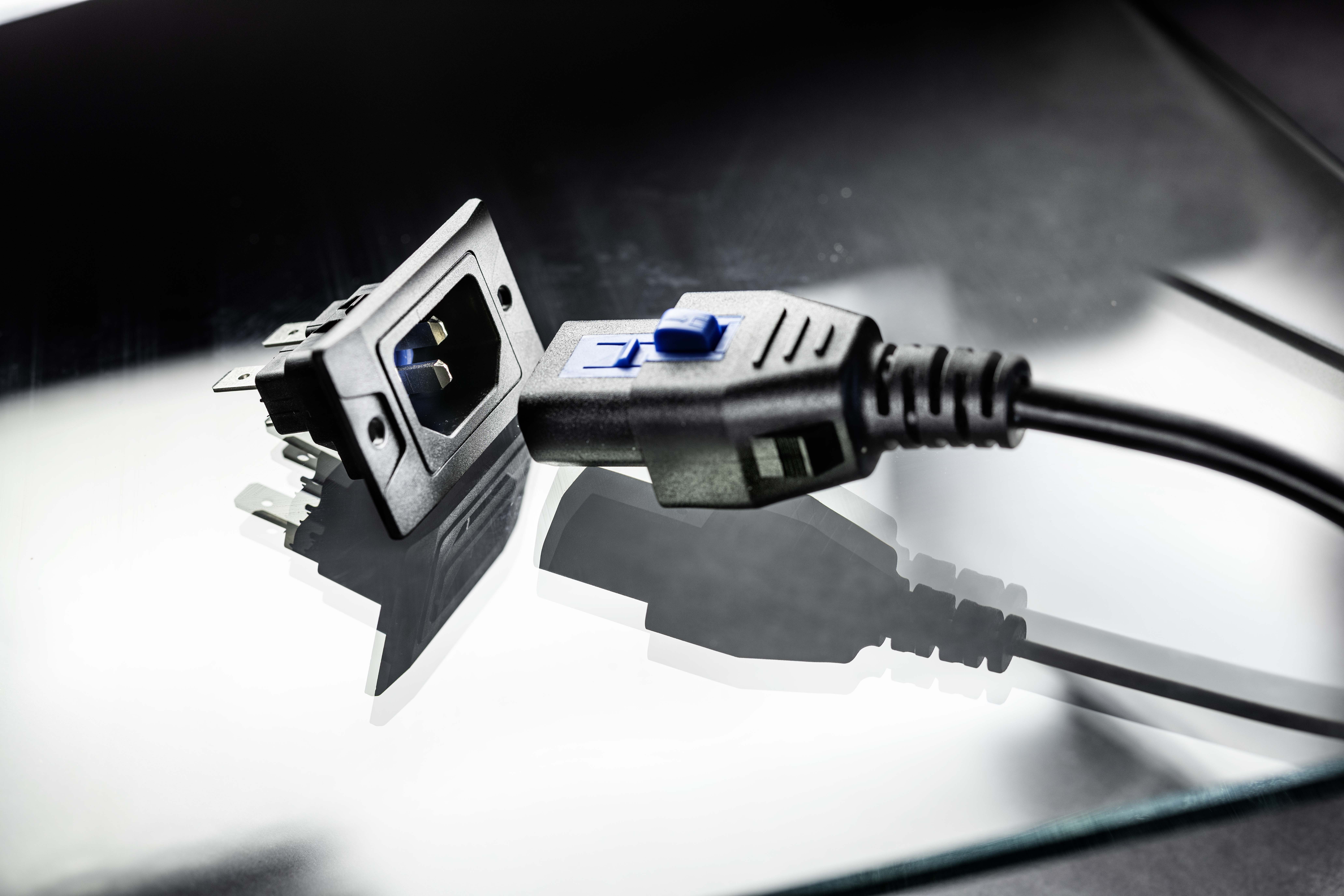 SCHURTER: 6080 Connector with V-Lock Power Cords Rated IP54 Under Load
