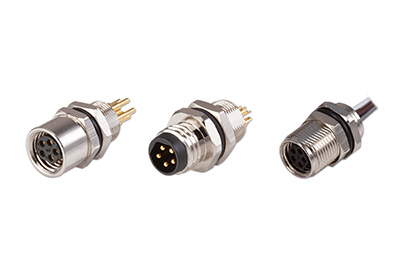 Housed in panel mount packages, these M8 circular connectors feature PC pin, crimped PC pin, or wire lead terminations and thread pitches of M8 x 0.5, M8 x 0.75, M8 x 1.0, M10 x 0.75, and M11 x 1.0. The circular connector models further carry an operating temperature range from -25 to 80°C, voltage ratings of 30 or 60 Vac, and current ratings of 1.5 or 3 A. Additional coding options are available as custom configurations.