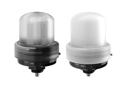 The K100 Pro Indicator model has a diffused lens that appears white when inactive, thereby preventing false indication. It features 14 color options that can be used for status and indication applications. It also has an IP66 rating for rugged environments, is rated as “dust tight,” and made to withstand powerful jets of water.