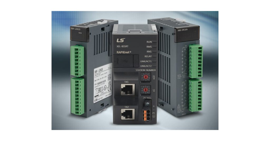The new XEL-BSSRT bus coupler allows I/O modules to be installed in remote locations and transmits all I/O signals back to the local controller using a single Ethernet cable, saving I/O wiring time and costs. The XGB bus coupler supports up to 8 LS I/O modules including high-density 32-point discrete, analog, and high-speed I/O modules, and it communicates easily with any controller supporting EtherNet/IP or Modus TCP protocols. The bus coupler and I/O modules can also be used as a low-cost field I/O system for numerous PLC brands.