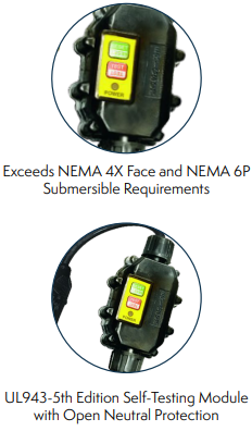 - Meets and exceeds the latest industry UL, CSA and NOM Requirements for self-testing GFCI circuitry (UL943) and Open Neutral Protection (UL1640)