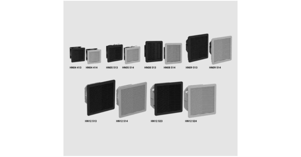 Introducing the HN 3R Side-Mount Filter Fans from nVent Hoffman. HN 3R Side-Mount Filter Fans quickly install into enclosures with a click-fit design; no tools or screws required, and the grilles open with the flick of a finger for easy filter replacement. There is a reverse airflow option on items ending with “R” available to push/pull air through higher static pressure, and a standard rope gasket provides a proper seal to the enclosure, as well as similar cut-out sizes as other filter fan manufacturers.