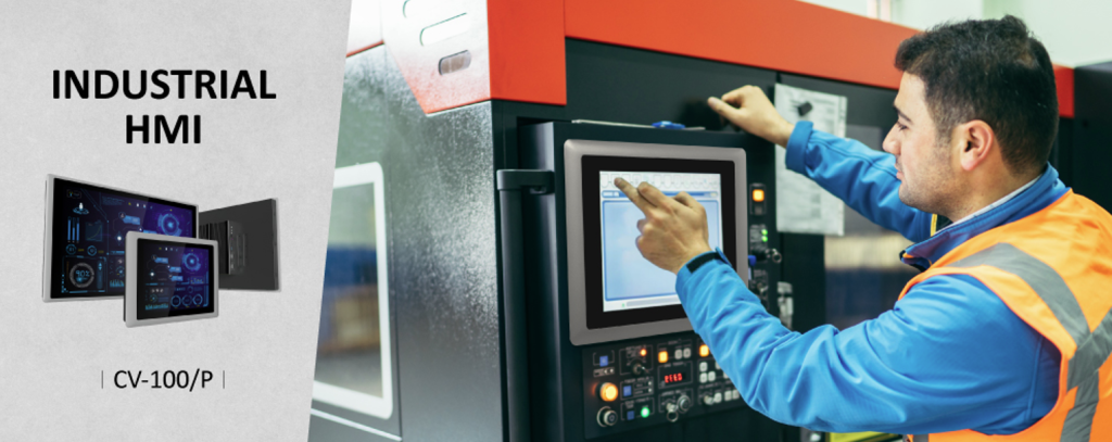 Cincoze industrial panel PCs (CV-100/P series) are recommended for HMI applications such as the machine monitoring system, materials management system, and factory environmental control, helping to make factories smart and enhance market competitiveness. The series has Intel® Atom®, Pentium®, and Core™ processor options to suit a range of applications, providing rich I/O interfaces to connect with other devices for data display and analysis. It also has expansion ports (Mini PCIe or M.2 Key E) for wireless communication modules to transmit data to the control center. The diverse and complete range of display options is a highlight for Cincoze customers, with sizes from 8.4” to 24”, display ratios from 4:3 to 16:9, and P-CAP and resistive touchscreens. The series is highly rugged and has industrial protections, including wide temperature (-20°C to 70°C), wide voltage (9 to 48 VDC), overvoltage, overcurrent, and ESD protection to ensure stability in industrial environments.