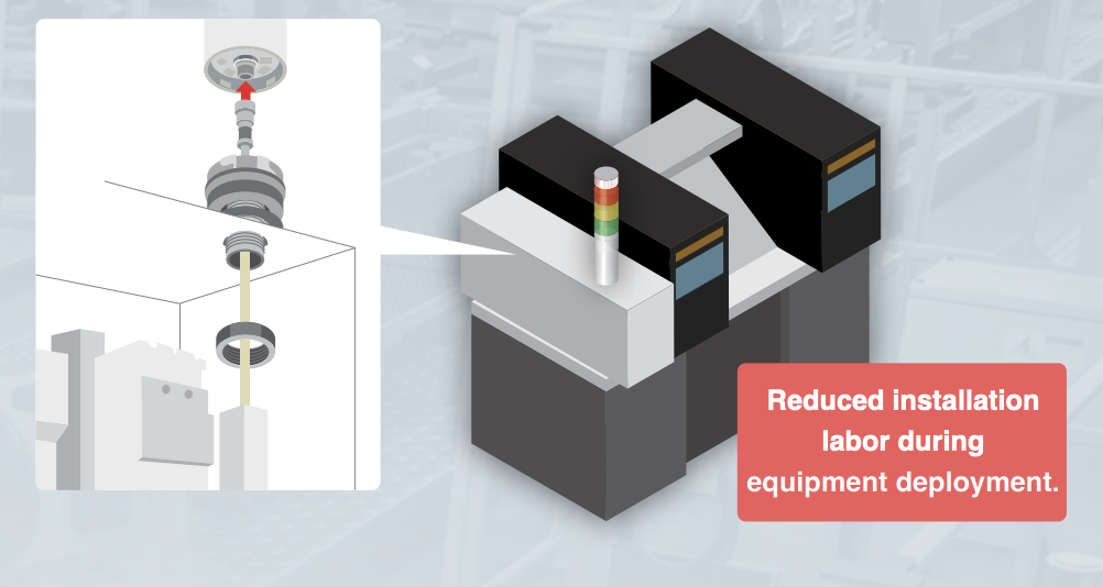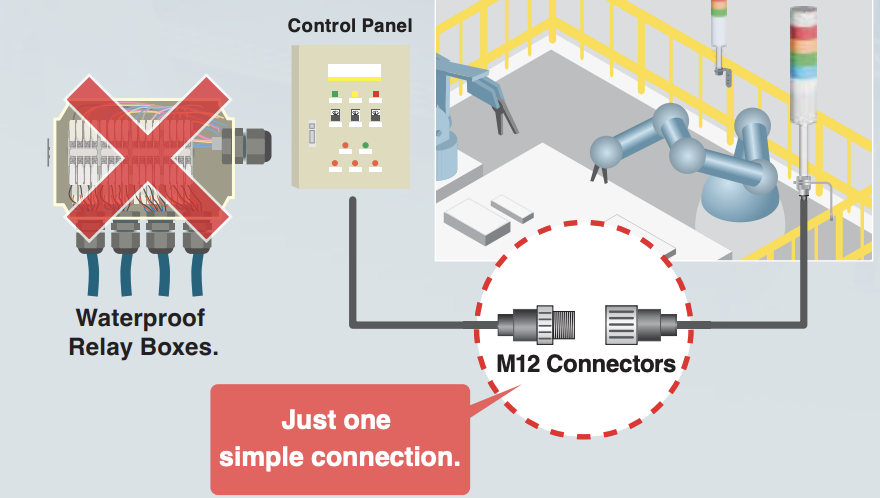 PATLITE reduces signal tower installation time with quick disconnect M12 connectors. Combining power and signal in one connector, the LR6-M12 Series signal tower uses a watertight M12 connector to eliminate the need for relay boxes, making maintenance and rewiring more efficient. Having only one cable to connect for installation and removal, the M12 ensures proper connection and no faulty wiring.