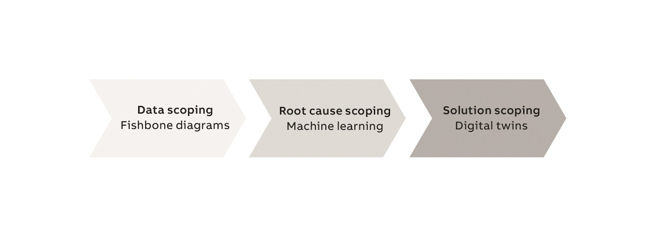 The first step is about scoping, where the target is to find data that might correlate but which was not considered in this context before. In the second step, the latest technology, such as machine learning or artificial intelligence, is applied to the data to obtain new insights about possible root causes. The third step is about developing a solution. And here’s where things really get exciting. Solution development for wicked problems typically begins with several proof-of-concept studies based on building models or digital twins. These are essential because the outcome of machine learning algorithms is associated with a given level of probability that needs to be proven before an implementation in a real industrial process can be performed.