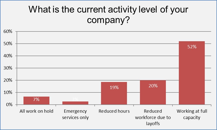 Secondly, we asked respondents to identify the current activity level of their company. And although we knew the results would vary for a national survey, the results are certainly more positive than anticipated.