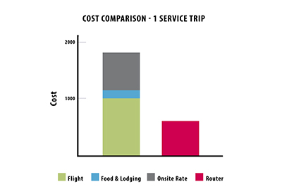 Traveling is expensive and difficult. Adding remote connectivity can significantly reduce the cost of responding to problems that arise during machine operation. When troubleshooting can be done remotely, we have found that adding remote connectivity can pay for itself in just one service call (see Figure 1). Not only do you save on travel, lodging, meal and wage expenses, but also on your technician’s valuable time that could be spent on other activities than traveling. Time is money, and there is an opportunity cost by not using remote access.