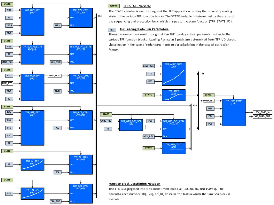 TFR systems in general are comprised of multiple controllers that monitor and regulate the operating parameters and manage the fuel supply to the gas turbine. These controllers maintain those parameters within their safe and effective operating ranges. Each controller operates in parallel and the final fuel control demand signal is selected from the individual controller outputs from either high selection or low selection logic.