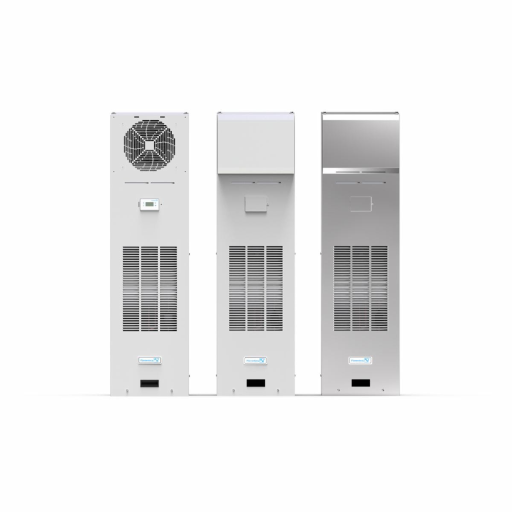 Hybrid cooling combines two distinct methods—free cooling and active cooling—into a unified system designed to optimize energy efficiency. Free cooling, or passive cooling, harnesses cooler ambient air to dissipate heat from inside industrial enclosures without relying on large energy consuming entities, like a compressor. Active cooling, on the other hand, employs a conventional refrigerant cycle utilizing a compressor to manage internal enclosure temperatures actively.