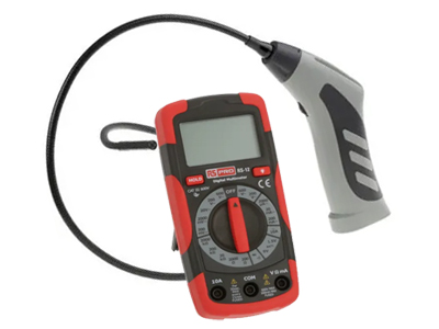 The RS Pro Wi-Fi Snake Scope borescope is designed to inspect hard-to-reach or hard-to-see areas such as HVAC ductwork, equipment enclosures, or crowded engine compartments. It can wirelessly stream high-quality videos from its camera head to a tablet or smartphone screen. The RS Pro handheld digital multimeter is CAT III rated for 600 V and has a durable, double-molded plastic housing with a large high-contrast 2,000-count LCD.