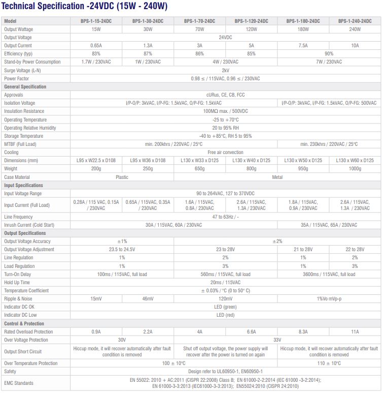 IMO: BPS Series 15W – 240W AC-DC DIN Rail Power Supplies
