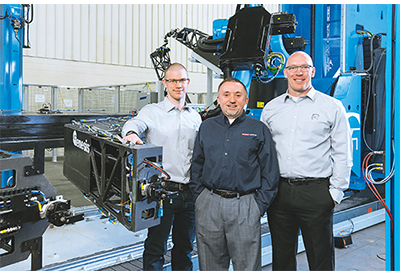 Another new development from Genesis is called the RoboPogo, a part holding system with multiple articulated robots for components undergoing NSpect™ NDI testing. The RoboPogo solution sets itself apart because a single system can handle complex parts with multiple geometries, according to Whitney Moon, Director, Aerospace Division, Genesis Systems Group. “In 2017 Genesis took on a project that required the fixturing of especially large parts for NDI. Doing this with traditional hard tooling or manually adapted fixtures would be very cumbersome and expensive,” Moon explained. When holding parts that are between 10 and 110 feet long, such a solution is ideal because the articulated robots offer the required degrees of freedom to accommodate multiple part geometries, varied processes or applications and can even enable dynamic repositioning during the ongoing inspection process. This is all precisely synchronized with the inspection robots of the NSpect™ series.